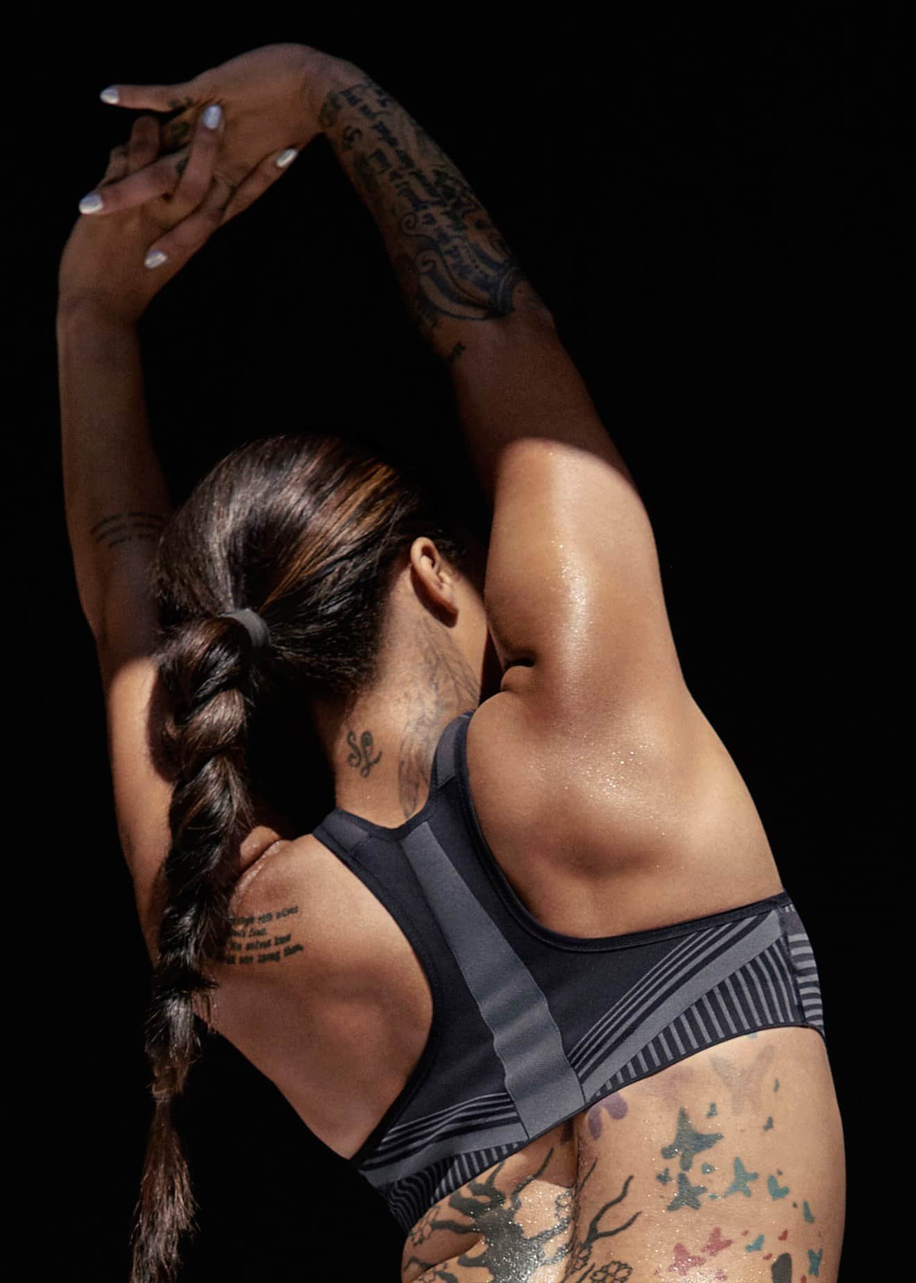«En primer lugar, cada mujer es totalmente diferente, por lo que sus necesidades son muy diferentes, pero también, mirando el movimiento de tejido que se obtiene a través de diferentes deportes, los sujetadores rebotan hacia arriba y hacia abajo, así como en forma de mariposa». explica Nicole Rendone, diseñadora senior de innovación de Nike.